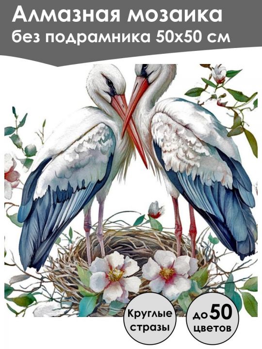 Алмазная мозаика без подрамника «Аисты» 50x50 см, 50 цветов 903 руб.