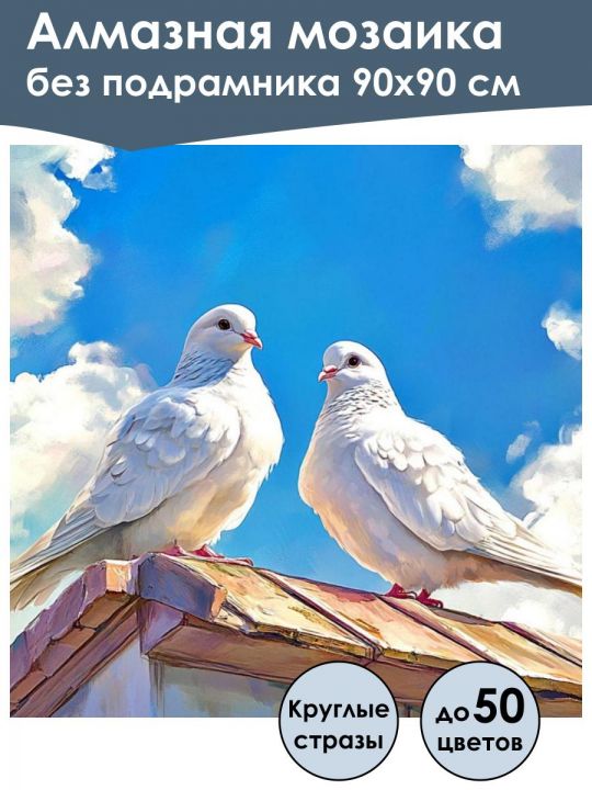 Алмазная мозаика без подрамника «Голубки» 90x90 см, 50 цветов