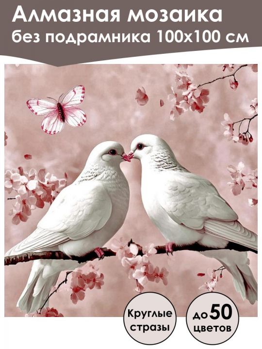 Алмазная мозаика без подрамника «Голубки» 100x100 см 2 277 руб.