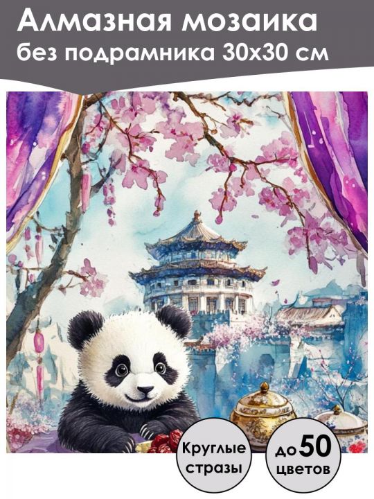 Алмазная мозаика без подрамника «Панда» 30x30 см, 40 цветов