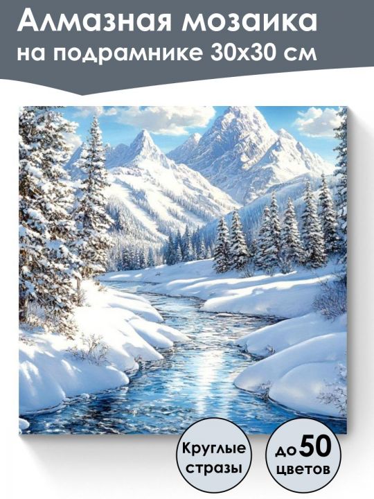 Алмазная мозаика на подрамнике «Горная река» 30x30 см, 40 цветов 873 руб.