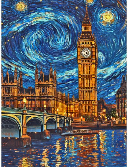 Алмазная мозаика без подрамника «Ночь в Лондоне» 25x20 см