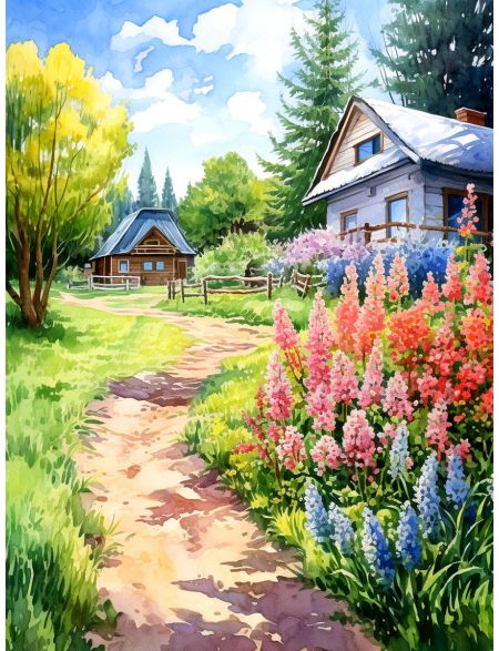 Алмазная мозаика без подрамника «Лето в деревне» 25x20 см, 39 цветов