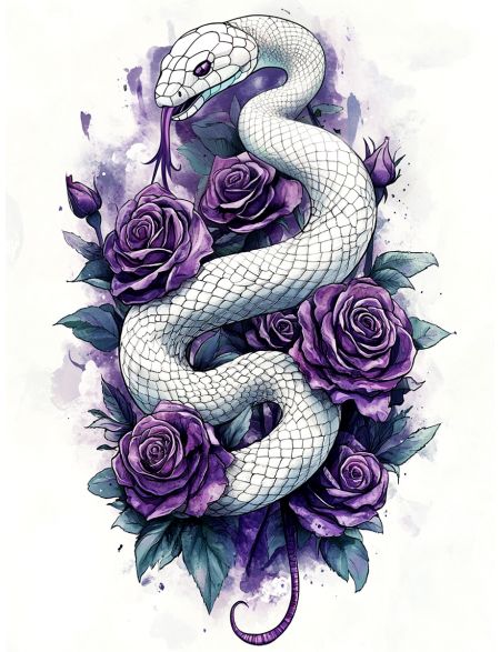 Алмазная мозаика без подрамника «Цветочная змея» 25x20 см, 40 цветов