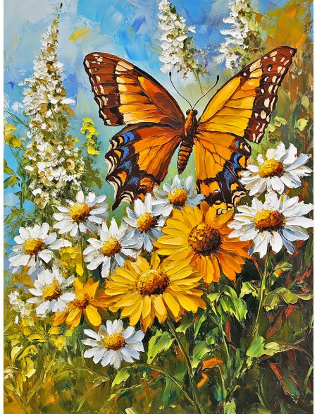 Алмазная мозаика без подрамника «Бабочка и цветы» 25x20 см