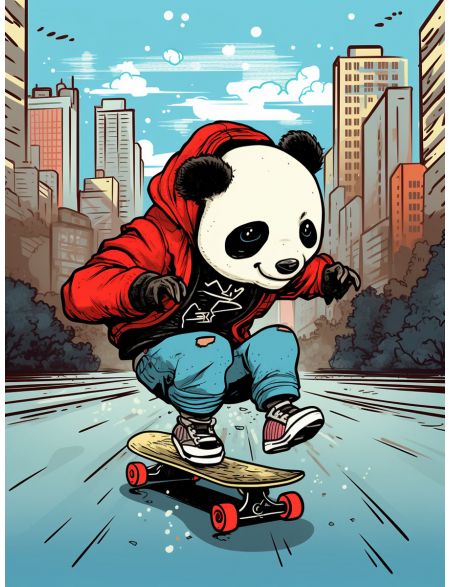 Алмазная мозаика без подрамника «Панда на скейте» 25x20 см, 40 цветов