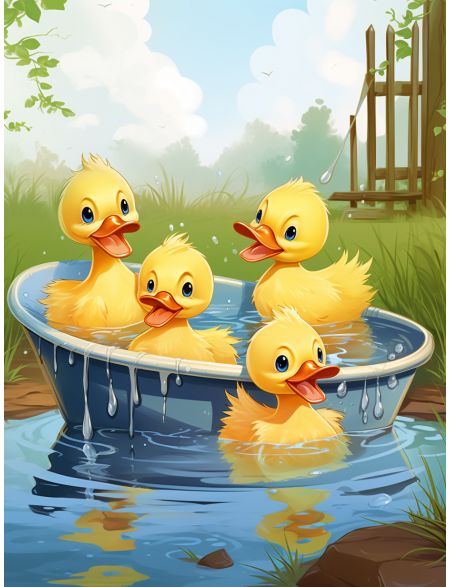 Алмазная мозаика без подрамника «Утята в тазу» 25x20 см, 40 цветов