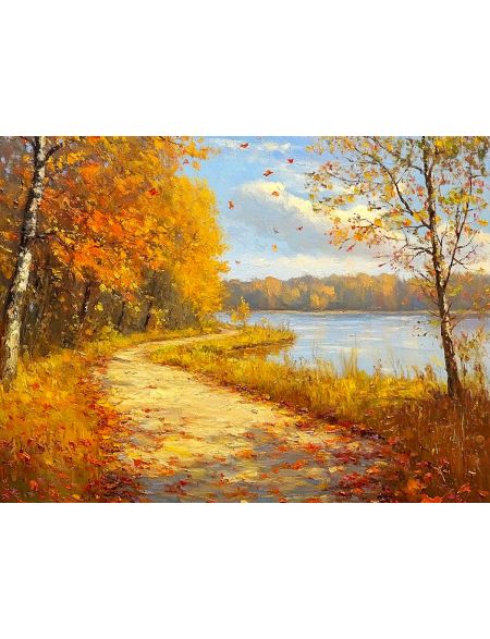 Алмазная мозаика без подрамника «Золотая осень» 25x20 см, 40 цветов