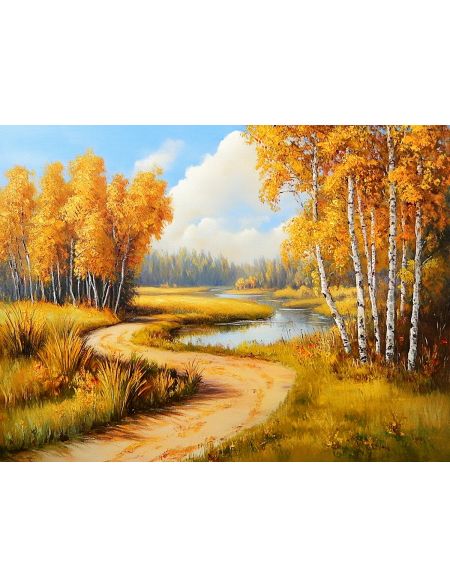 Алмазная мозаика без подрамника «Осень на Волге» 25x20 см