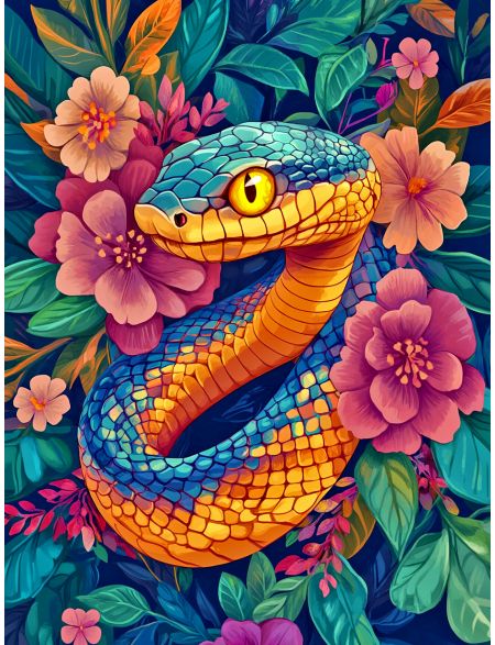 Алмазная мозаика без подрамника «Цветочная змея» 25x20 см, 40 цветов