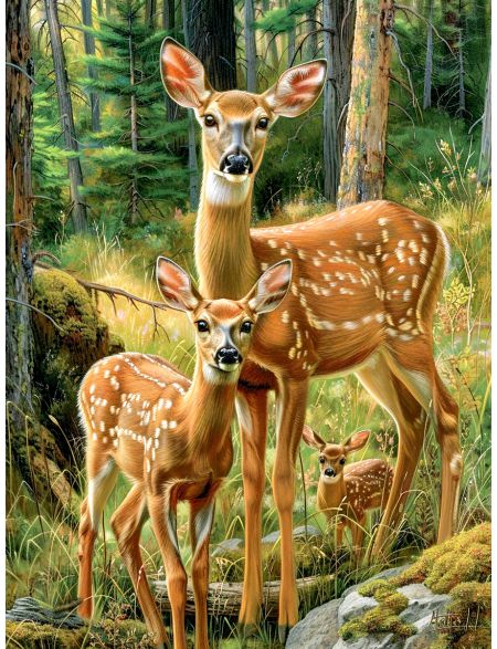 Алмазная мозаика без подрамника «Олени» 25x20 см, 37 цветов