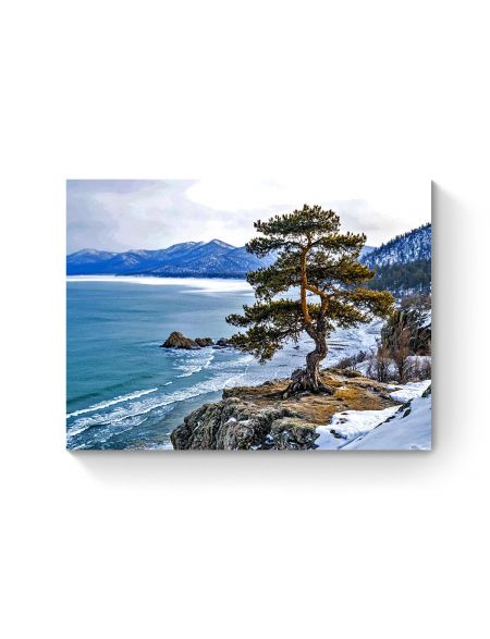 Алмазная мозаика на подрамнике «Природа Байкала» 40x30 см, 50 цветов