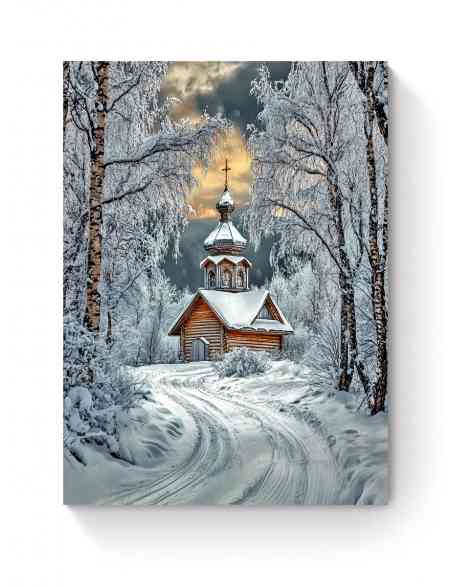 Алмазная мозаика на подрамнике «Зима в деревне» 40x30 см, 50 цветов