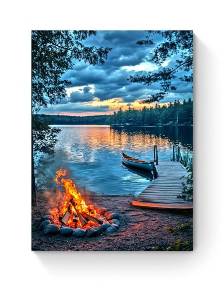 Алмазная мозаика на подрамнике «Костер у воды» 40x30 см, 50 цветов