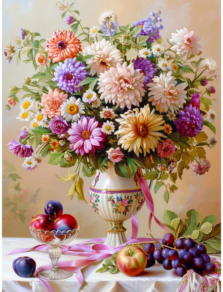 Алмазная мозаика на подрамнике «Георгины» 40x30 см, 47 цветов