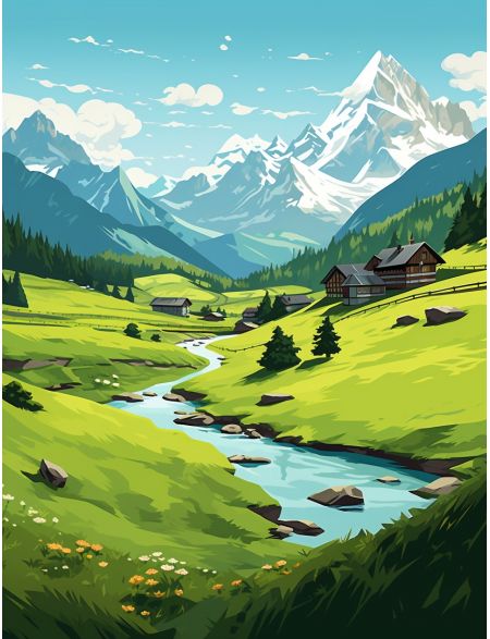 Алмазная мозаика на подрамнике «Высокая гора» 40x30 см, 50 цветов