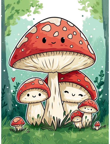 Алмазная мозаика на подрамнике «Веселые грибочки» 40x30 см, 50 цветов