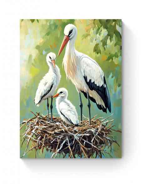 Алмазная мозаика на подрамнике «Аисты в гнезде» 40x30 см, 50 цветов