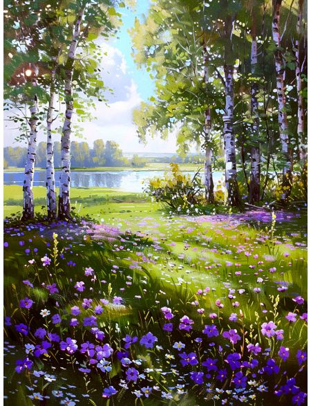 Алмазная мозаика на подрамнике «Лето в деревне» 40x30 см, 47 цветов