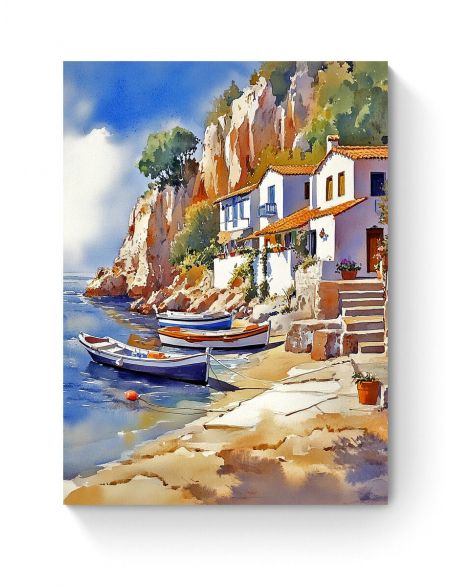 Алмазная мозаика на подрамнике «Лодки на берегу» 40x30 см