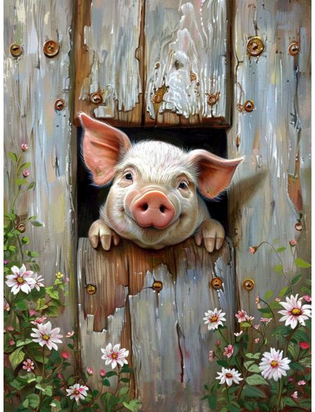 Алмазная мозаика на подрамнике «Щенок с цветами» 40x30 см, 30 цветов