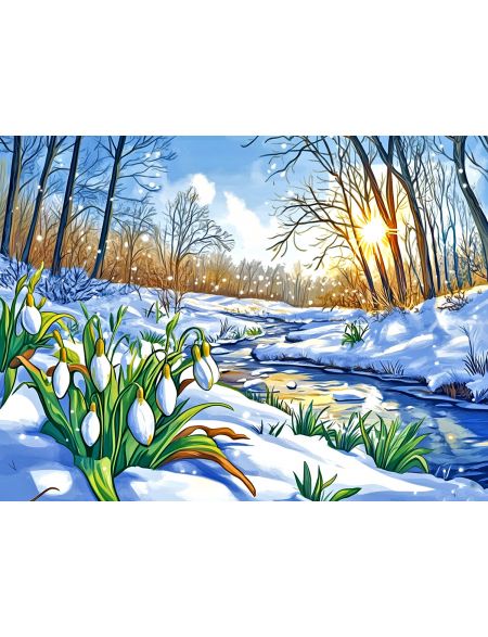 Алмазная мозаика без подрамника «Первые цветы» 40x30 см