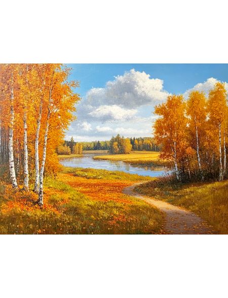 Алмазная мозаика без подрамника «Золотая осень» 50x40 см, 50 цветов