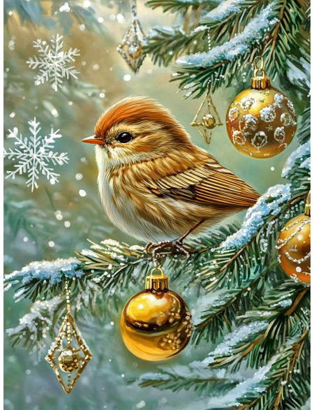 Алмазная мозаика без подрамника «Птичка на ветке» 50x40 см, 50 цветов