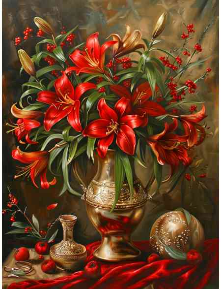Алмазная мозаика без подрамника «Лилии» 50x40 см, 48 цветов