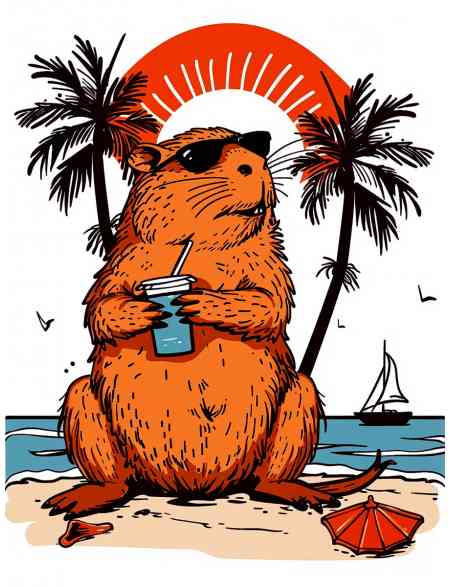 Алмазная мозаика без подрамника «Капибара на отдыхе» 50x40 см, 50 цветов