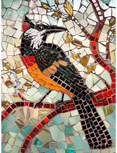 Алмазная мозаика без подрамника «Птичка на ветке» 50x40 см, 50 цветов