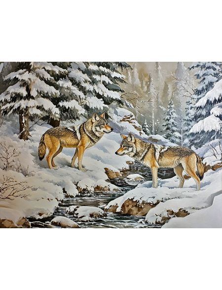 Алмазная мозаика без подрамника «Волки зимой» 50x40 см