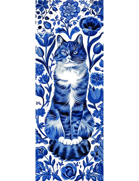 Алмазная мозаика на подрамнике «Кот гжель» 70x24 см, 45 цветов
