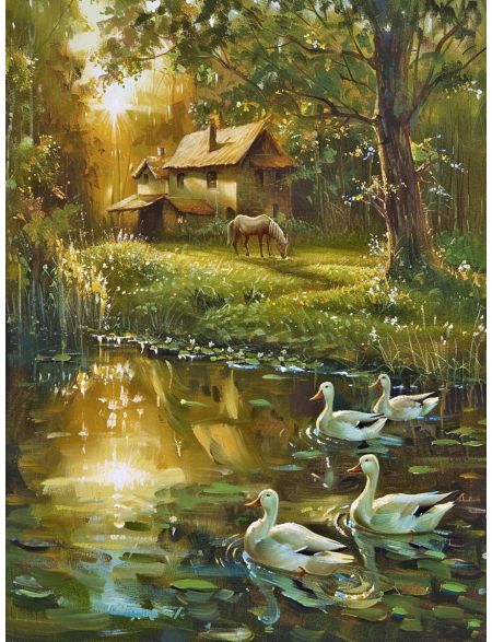 Алмазная мозаика на подрамнике «Лето в деревне» 70x50 см, 40 цветов