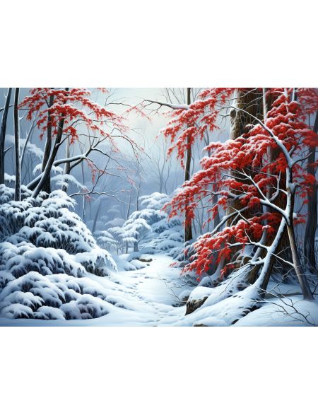 Алмазная мозаика на подрамнике «Заснеженная рябина» 70x50 см, 50 цветов