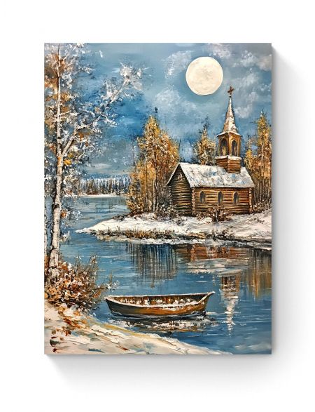 Алмазная мозаика на подрамнике «Зима в деревне» 70x50 см, 50 цветов