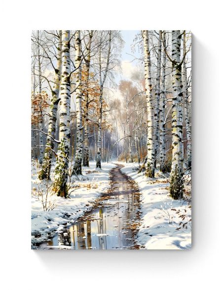 Алмазная мозаика на подрамнике «Оттепель в лесу» 70x50 см, 44 цветов