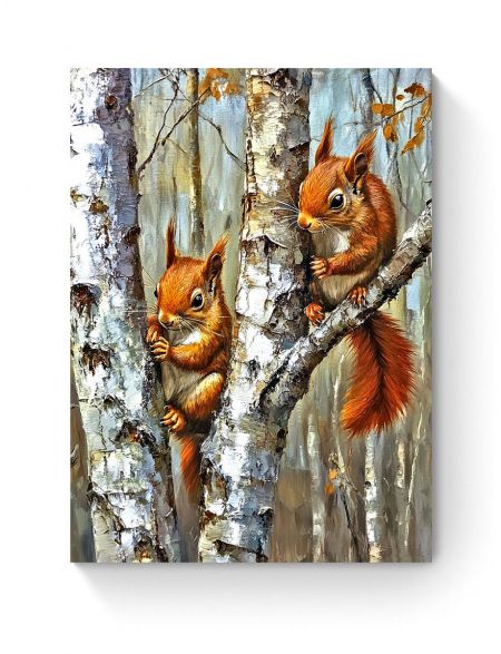 Алмазная мозаика на подрамнике «Две белочки» 70x50 см, 50 цветов