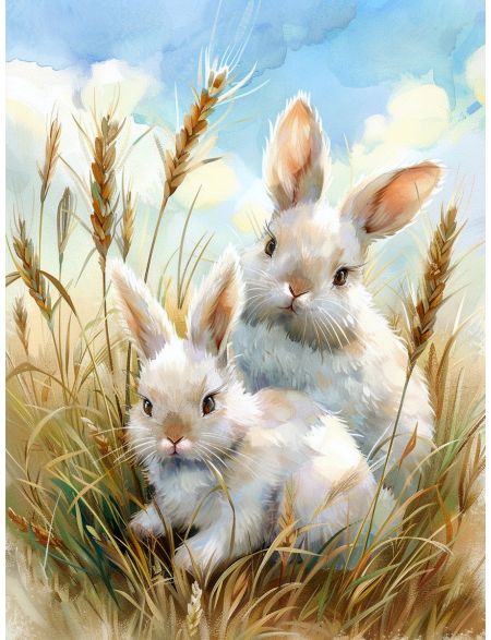 Алмазная мозаика на подрамнике «Кролики» 70x50 см, 46 цветов