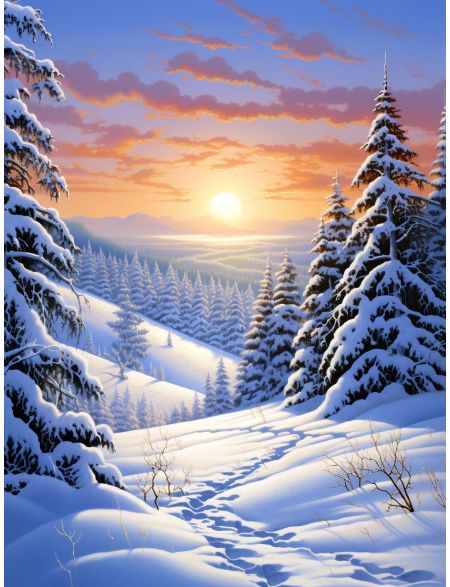 Алмазная мозаика на подрамнике «Зимний закат» 70x50 см, 50 цветов