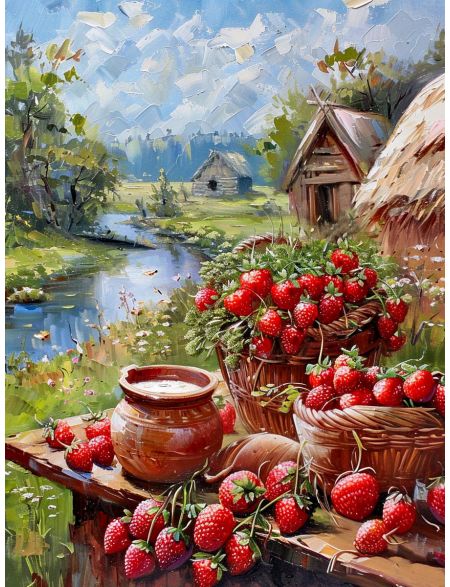 Алмазная мозаика на подрамнике «Лето в деревне» 70x50 см, 46 цветов