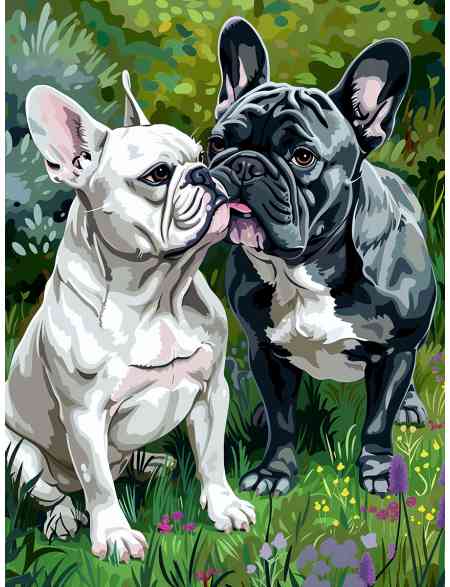 Алмазная мозаика без подрамника «Фр. бульдоги» 70x50 см, 50 цветов