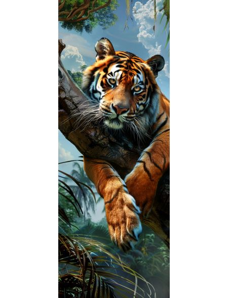 Алмазная мозаика на подрамнике «Тигр на ветке» 90x30 см, 45 цветов