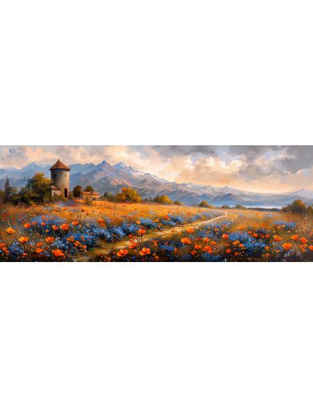 Алмазная мозаика на подрамнике «Поле цветов» 90x30 см, 50 цветов