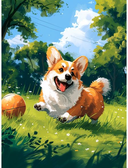 Алмазная мозаика без подрамника «Корги» 90x70 см, 50 цветов