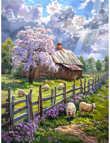 Алмазная мозаика без подрамника «Лето в деревне» 90x70 см, 49 цветов