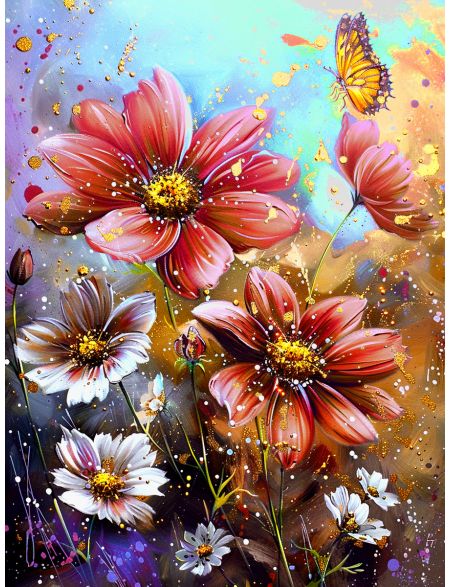 Алмазная мозаика без подрамника «Цветы» 90x70 см, 50 цветов