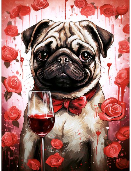 Алмазная мозаика без подрамника «Мопс» 90x70 см, 50 цветов