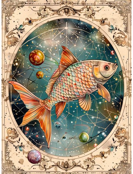 Алмазная мозаика без подрамника «Рыбы» 90x70 см, 46 цветов