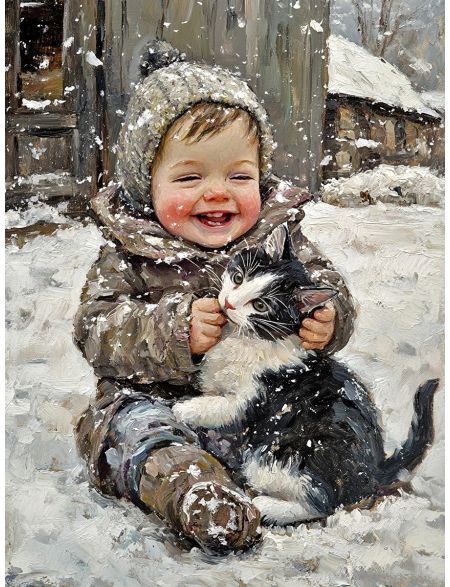 Алмазная мозаика без подрамника «Зима в деревне» 90x70 см